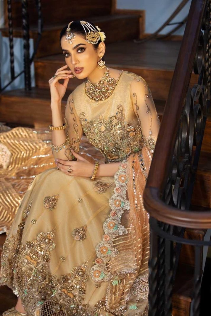 The soft gold tone makes this embellished formal outfit ideal for formal gatherings, festive events, wedding celebrations, and evening occasions. Detailed borders, floral motifs, and elegant finishing elevate the overall look effortlessly.